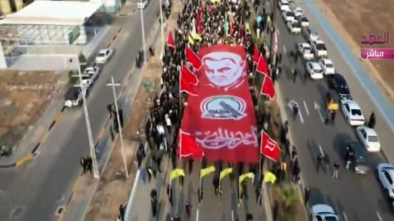Жел 26, 2022 13:26Шәһид сардар Қасем Сүлеймани мен шәһид Әбу Мәһди әл-Мохандестің Басрада мәйітін символикалық жерлеу рәсімі.