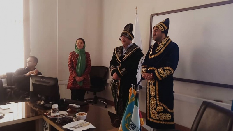 Дөңгелек үстел соңында Алламе Табатабаи университетінің Шет тілдері факультетінде өтіп жатқан қазақ тілі курсының студенттері өнер көрсетіп, «Қазақ тілі» әнін орындады.