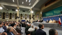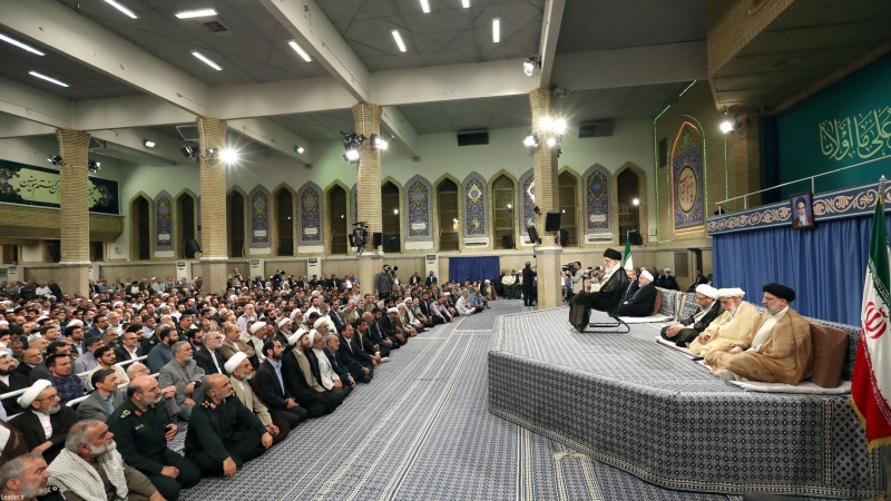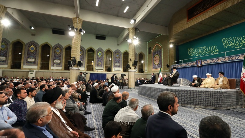 Ислам революциясы жетекшісі аятолла Хаменеи сәрсенбіде бірақатар жүйе басшылары, исламдық елдер елшілері және халықтың әртүрлі таптары өкілдерімен кездесуінде Ораза айт күнімен құттықтап, Палестина мәселесін ислам әлемінің басты тақырыбы деп атап, АҚШ пен сионистік режимнің мақсаттарына сай талпынып отырған кейбір исламдық елдерді сынады. Аятолла Хаменеи: «Кейбір араб көне басшыларының еврейлерді теңізде батыру керек деген пікірлеріне керісінше Ислам республикасы олай ойламайды, бірақ басынан Палестина халқын қорғайтынын қуаттап, үстемшілерге қарсы тұрды және осы кезде қарсыласуын жалғастыруда»,- деді. Ислам революциясы жетекшісі Иранның Палестинаның мұсылман, христиан және еврей тұрғындарынан және босқындарынан бұл елдің үкімет жүйесі туралы сауалнама жүргізу ұсынысын еске салып: «Дұшпандар Палестина халқының дауысына бағынғанша, бұл халықтың әскери, саяси және мәдени тұрғылардағы күресі жалғасуы қажет»,- деп қосты. Аятолла Хаменеи сионистік режиммен бітімге келу және исламдық елдер арасында қайшылық тудыруды көздейтін кейбір исламдық мемлекеттерге қате жолға түскендері үшін тәубе ету ақыл-кеңес беріп: «Неге Ливия сынды исламдық елде екі топ бір-біріне қарсы тұрып, бір-бірінің қаның төгуі керек, неге Ислам дінінің жақтасымын деп жариялайтын мемлекет Йемен халқы мен бұл елдің инфрақұрылымдарын бомбалап, дұшпанның қалауына сай амал етеді?»- деп баса айтты.