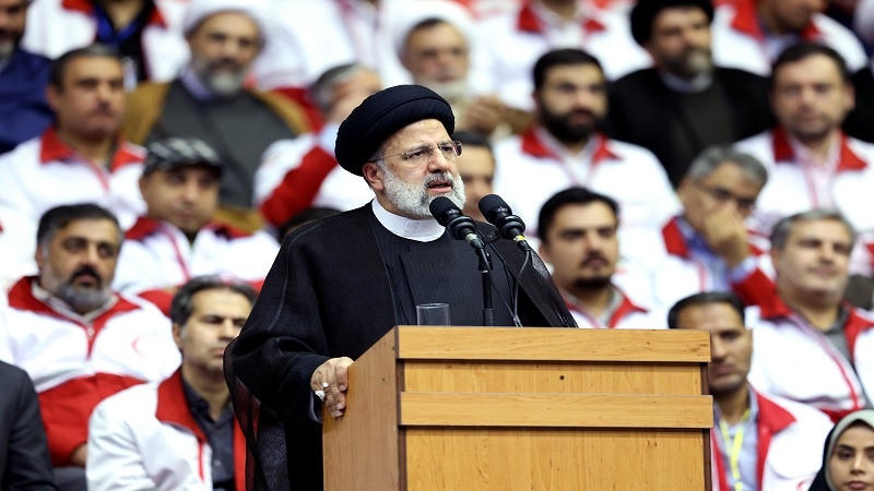 Iran Press ақпарат агенттігінің хабарлауы бойынша, Ибрахим Раиси осы рәсімде Қызыл Жарты ай күштерінің бүгінгі табиғи апаттарда қызмет көрсетіп, көмек көрсететін бірінші топ екеніне тоқталып: «Су тасқыны мен жер сілкінісі сияқты табиғи апаттардан басқа, Ирандағы көмектің әдемі көріністерінің бірі коронавирусының өршуі кезінде пайда болды, мұнда көмекшілер орны толтырылмайтын және ұзақ көріністер жасады»,- деді.