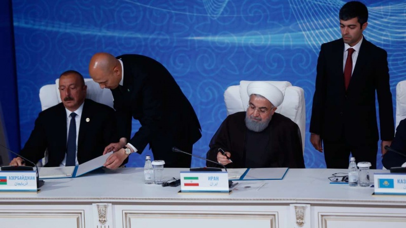 ИИР президенті Каспий теңізінің құқықтық мәртебесі туралы конвенцияға қол қоюды аса маңызды қадам деп атап: "Әлі де шешілмеген маңызды мәселелер қалды. Сондықтан соңғы келісімге келу үшін, әсіресе шекараны межелеп бөлу, бастапқы шекара сызықтарын анықтау жолдарына қатысты келісімге келу мақсатындағы келіссөздер жалғасуы тиіс.