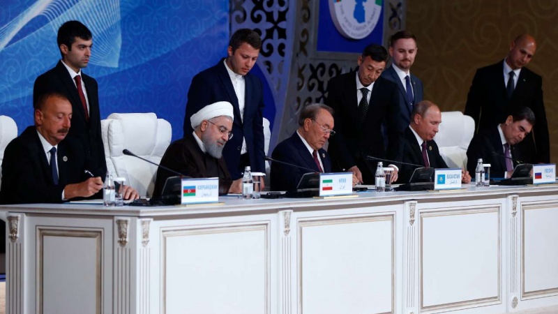 Иран президенті жексенбі күні Қазақстанда өткен Каспий теңізі маңындағы мемлекеттер басшыларының саммитінде сөйлеген сөзінде Иранның Солтүстік және Оңтүстік бөліктеріндегі теңізге қолжетімділігіне байланысты сауда-саттық пен тасымалды дамыту мақсатында стратегиялық және аймақтық рөл атқаруға дайын екенін мәлімдеп: