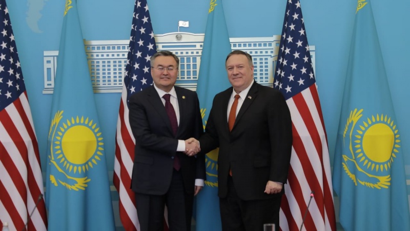 Майк Помпео қазақстандық әріптесімен Нұр-Сұлтан қаласында өткізген баспасөз отырысында бұл мәселе жөнінде Қазақстан Сыртқы істер министрі Мұхтар Тілеубердімен пікір алмасқанын хабарлады. Помпео: "Біз Қытайдың лагерлерінде отырған бір-екі миллион ұйғыр мен этникалық қазақтардың ауыр тағдырын талқыладық. Халықаралық қауымдастық Қытайдан қашып, басқа елдерде пана тапқысы келетін түрік тілдес ұйғырлар мен қазақтардың қауіпсіздігін қамтамасыз етуге талпынуы керек",-деді. Помпео сондай-ақ АҚШ-тың Қазақстанға Қытайда таралған короновирусқа қарсы тұруға көмектесетінін мәлімдеді.