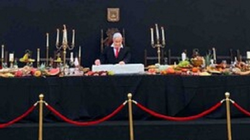 Тель-Авивтің орталық алаңында «Соңғы кешкі ас» инсталляциясы қойылды. Онда Нетаньяхудың Израиль режимінің туын жеп отырғаны бейнеленген.