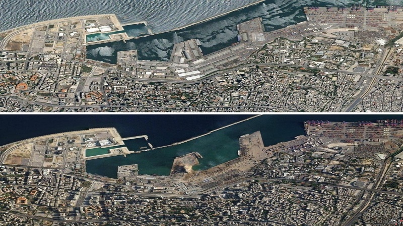 Бейрут айлағының жарылысқа дейінгі және кейінгі көріністер