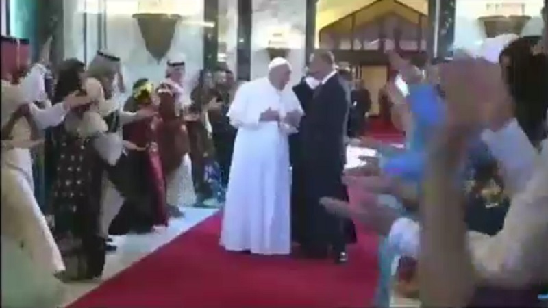 Ватикан Папасы бұл рәсімде: «Ирак көптеген жылдар бойы халқының жүрегін жаралаған терроризм мен экстремизмнен зардап шегіп келеді. Сондықтан мемлекеттік институттар арқылы өз болашағын құрғысы келетін Ирак халқына көмектесуді тоқтатпау керек»,- деді.
