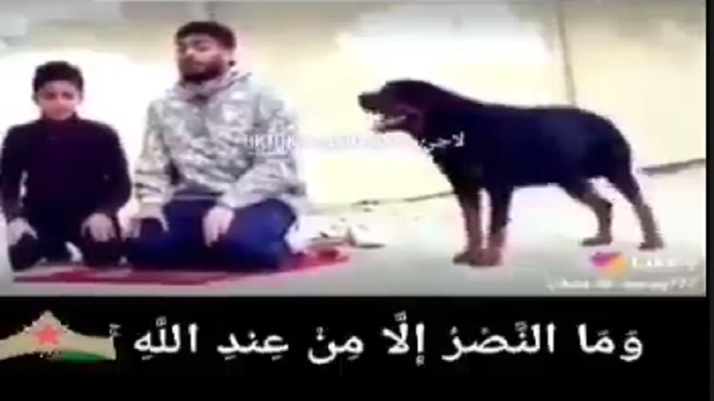 Әлеуметтік желілерде сионистердің итті көшеде намаз оқып жатқан жас палестиналық пен оның баласына шабуылға жібергендері, бірақ иттің үнсіз тұрып қалғаны туралы видео жарияланды.