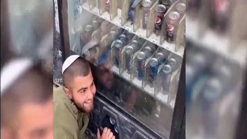 Сионистік режимнің сарбазы қоғамдық орында тоңазытқыштан сусын ұрлады.