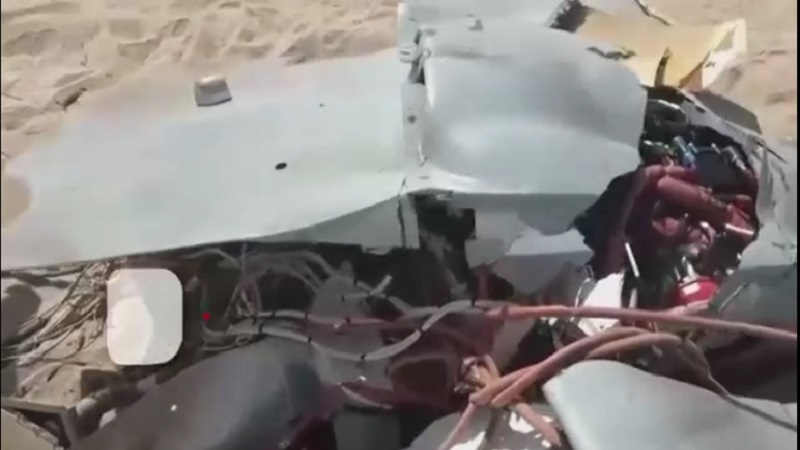 Видеода құлатылған ұшқышсыз ұшақтың қалдықтарын көре аласыздар.