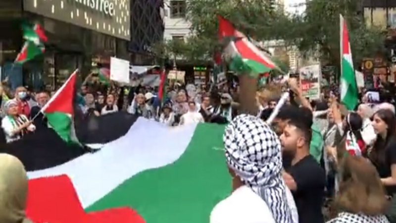 Аустралияның Сидней қаласында халық Некбат күніне орай көшеге шығып, Палестина халқына қолдау көрсетіп, ұрандатты.