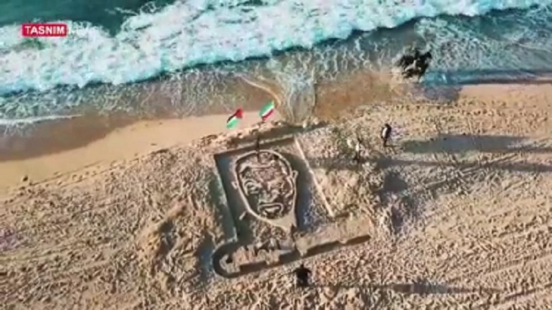 Генерал Қасым Сүлейманидің шәһид болғанын үшінші жылымен бір мезгілде палестиналық суретші Газа секторы жағажайының ағып жатқан құмын пайдаланып, Газа секторының жағажайында Палестинаның қарсыласу осі мен ісінің шейіт болған қолбасшысының суретін салды.