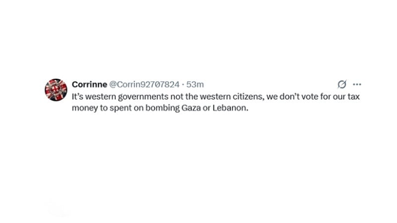 Израильді қолдайтын Батыс үкіметтері Батыс азаматтары емес, біз салық ақшамыздың Газаны немесе Ливанды бомбалауға жұмсалуын қаламаймыз.