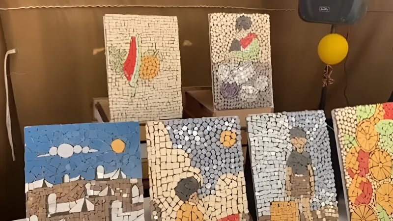 Көрмеге қатысқан мозаика өнерпаздарының бірі өз жұмыстары туралы сынған керамиканы қираған үйлер мен табиғи тастардан ешқандай бояу қоспай алып тастағаннан кейін қайта өңдеу арқылы мозаика суреттерін жасаудың ерекше әдісін қолданатынын түсіндірді.