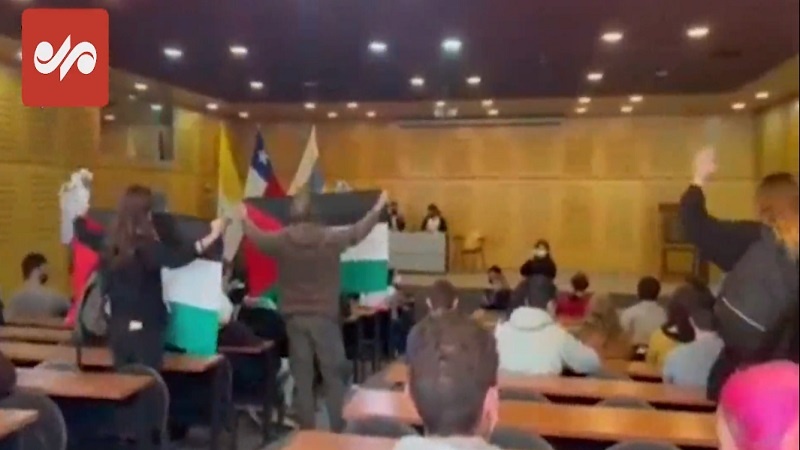 Чили студенттері сионистік режимді қорғаушы Юсеф Хаддадтың қатысуымен өткен отырыста Палестина халқын қолдап, «Израильдің апартеидіне жоқ» деп ұрандатты.