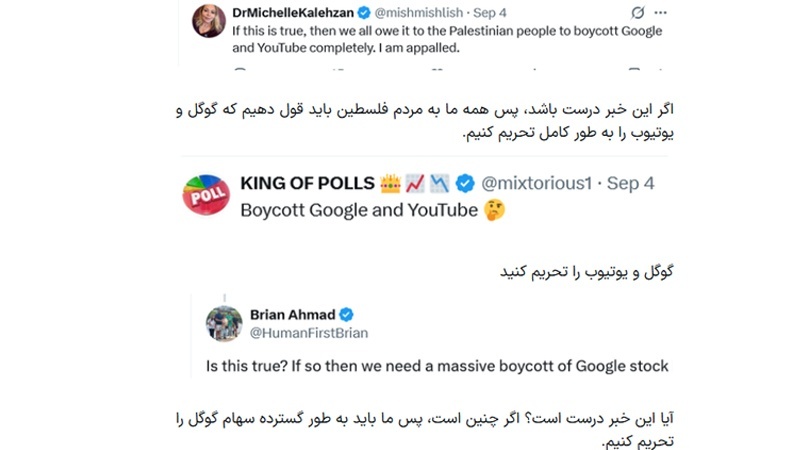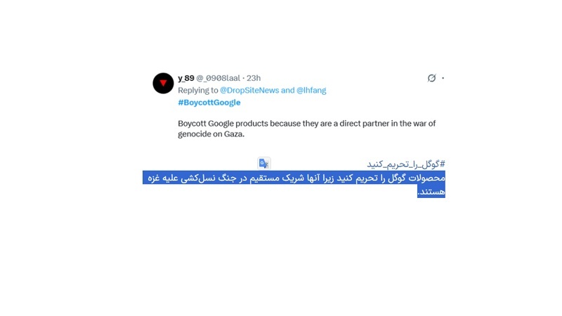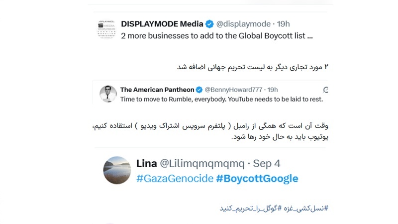 Әлеуметтік желі қолданушылары екі халықаралық компания, Google және YouTube және Нетаньяху кеңсесі арасындағы жаңадан ашылған мәмілеге наразылық білдіру үшін «Google-ға бойкот» хештегін бастады. ParsToday америкалық Drop Site News басылымына сілтеме жасап хабарлауынша, Google Газадағы ашаршылықты жоққа шығаратын жарнамаларды жариялау үшін Израильмен 45 миллион долларлық жарнамалық келісім-шарт жасасып жатыр.