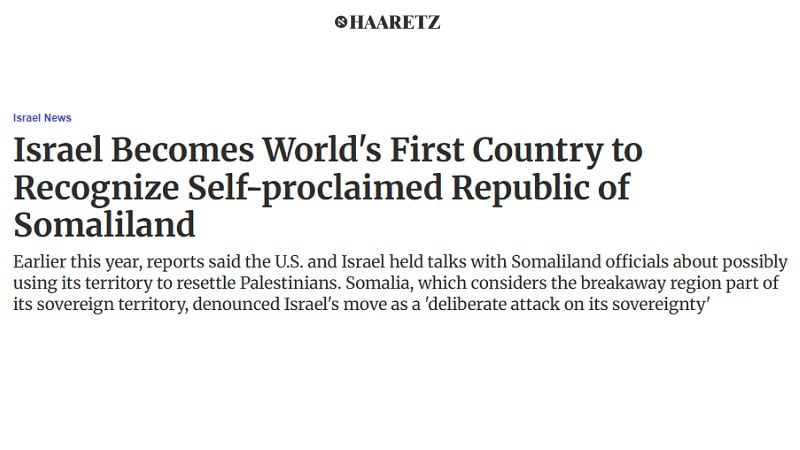 Израиль премьер-министрінің кеңсесі жұма күні премьер-министр Биньямин Нетаньяхудың «Сомалиленд Республикасын» тәуелсіз және егеменді мемлекет ретінде танығанын хабарлады. Сомалиленд - Сомалиден бөлінген аймақ және оның басшылары халықаралық деңгейде танылуға үміттенеді. Сионистік режим АҚШ қолдауымен Газа секторында тұратын Палестина азаматтарын мәжбүрлі көші-қон жоспарын жүзеге асыру үшін Африканың осы аймағына жіберуді көздеп отырғаны айтылады. Бұл мақалада Pars Today X әлеуметтік желісі пайдаланушыларының Нетаньяхудың бұл қадамы және оның соңғы салдары туралы пікірлеріне тоқталады.