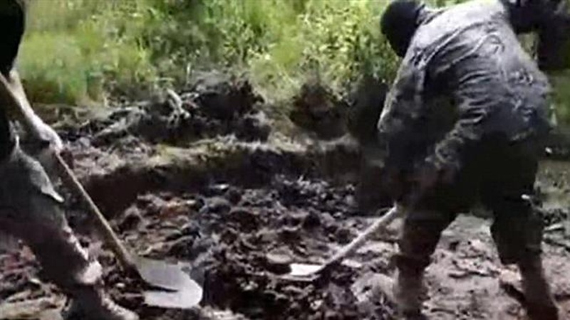 Интернет кеңістігінде таратылған видео украиналық сарбаздардың Ресейге жақтас күштердің бірін тірідей көрге көмгенін көрсетеді.