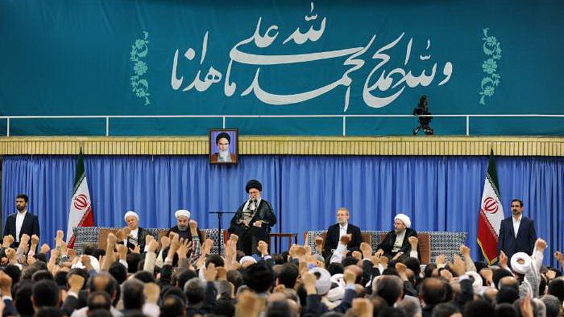 Иран Ислам революциясының жетекшісі ислам әлемінің Йемен, Сирия, Бахрейн және Ирактағы үлкен қиындықтарына тоқталып, бұл мәселелердің негізгі себебін үстемшілер, әсіресе АҚШ пен сионистік режимнің барлау және қауіпсіздік қызметтері деп көрсетіп: «Ислам республикасы үстемшілерге қарсы тұруда мықты жігерге ие. Бұл жігер тек үкіметтің ғана емес, халық тарапынан да байқалады. Ислам республикасында зорлық-зомбылық жасаушыларға қарсы бүкіл Иран халқы, яғни біздің жастарымыз, біздің революцияшыл әрі мүмін халқымыз табандылық білдіруде. Біртұтас, мақсаты мен ынтасы бір халқы бар кез келген мемлекет дұшпанға қарсы тұратындықтан, дұшпан оған шабуыл жасай алмайды»,- деп баса айтты.
