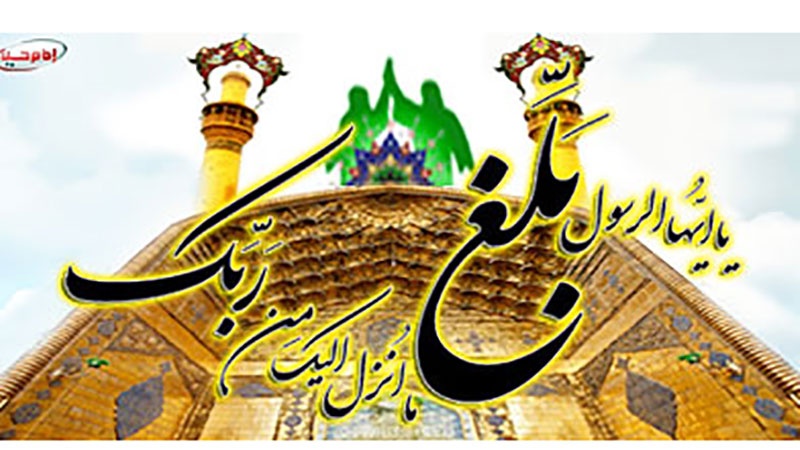 Уа, халайық! Алла Тағаланың маған уәһи еткен жолдауын насихаттап, оны сендерге жеткізуге енжарлық танытпадым. Сендерге мына аяттың түсірілген себебін айтамын: Жебірейіл Жаратушы тарапынан үш рет түсіп, дәл осы мекенде халықтың алдында Әли ибн Абуталибты (ғ.с) өзімнің бауырым және менен кейін орнымды басатын мұрагерім әрі мұсылмандардың имамы екенін мәлімдеу туралы бұйрығын жеткізді. Ол Харун Мұса пайғамбарға қандай болса, мен үшін де сондай. Менің бауырым әрі орынбасарым саналады. Тек менен кейін ешқандай пайғамбар келмейді. Әли Құдай мен оның пайғамбарынан кейінгі сендердің басшыларың әрі билеушілерің саналады. Құдай бұған байланысты маған түсірген келесі аятында былай деді: "Шынайы түрде сендердің достарың Алла және Елшісі және намазды толық орындайтын, зекет беретін әрі рүкуғ қылушы мүміндер (Мәида сүресі, 55-аят)". Әли ибн Абуталиб – намазын толық орындап, рукуғ қылып, зекет берген және кез келген жағдайда Алланың разылығына бөленуді көздеген адам".